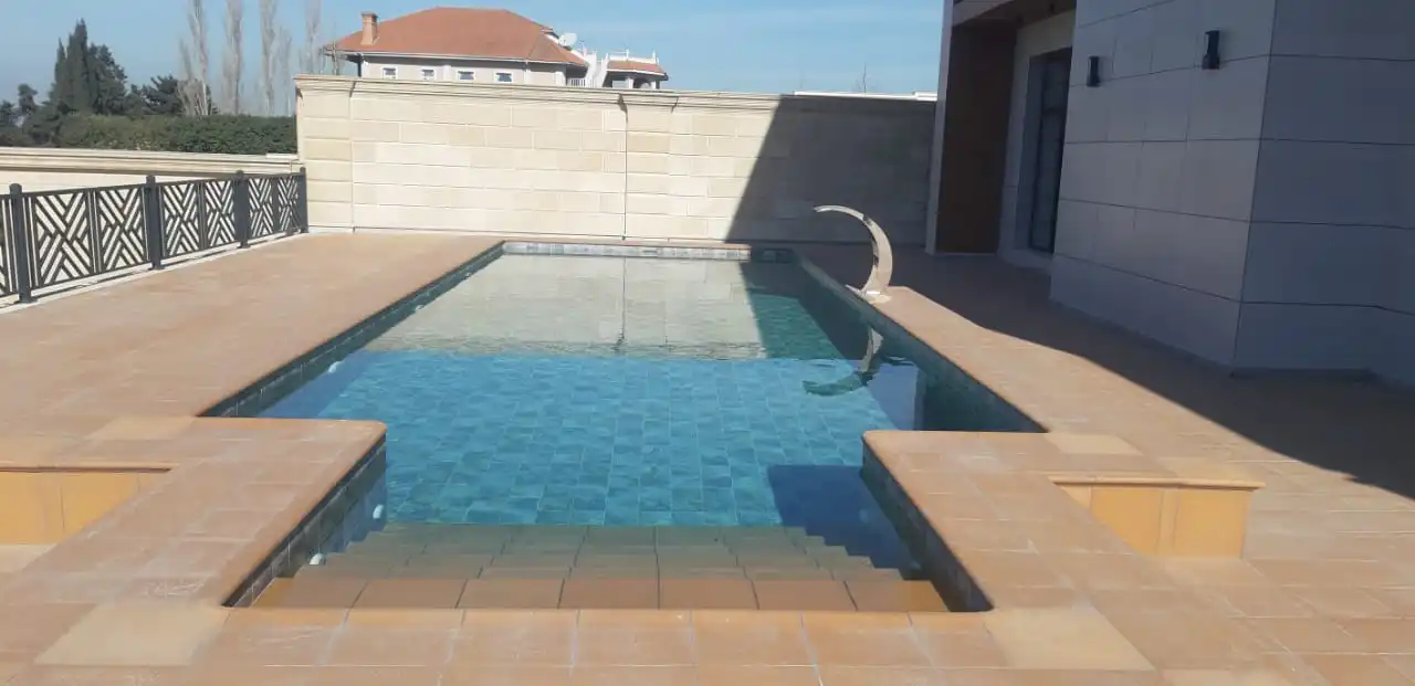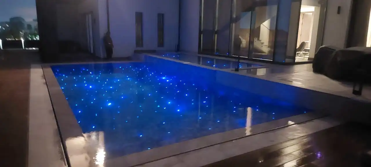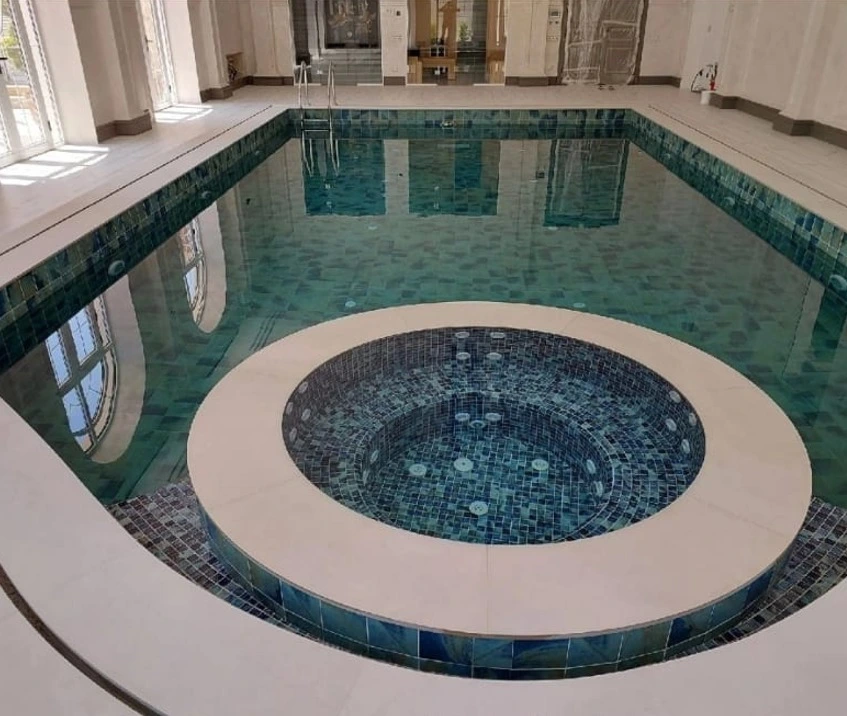 Bu hovuz qapalı məkanda tikilib. Hovuzun içinə 4 nəfərlik cakuzi quraşdırılıb. Müştərinin tələbinə əsasən premium sinif materiallardan istifadə olunub.